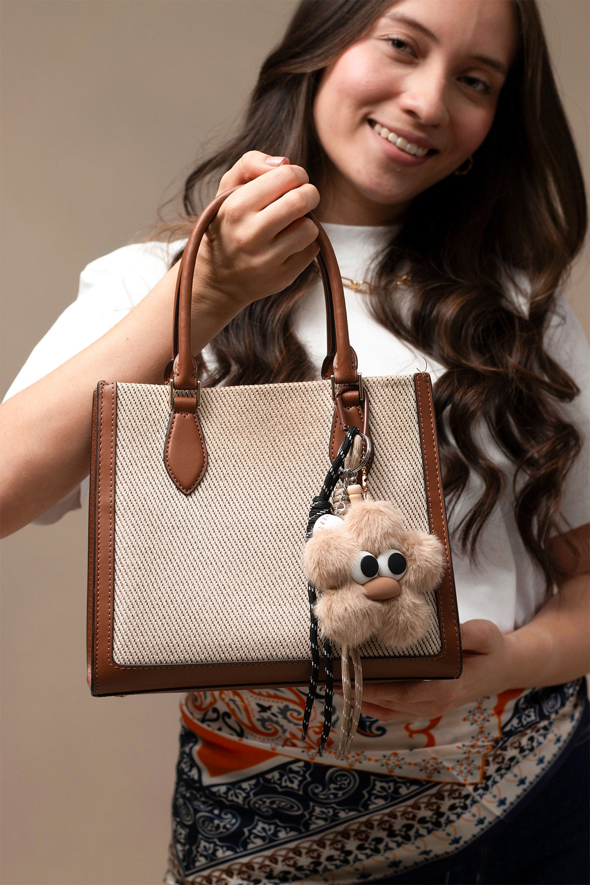 Llavero con accesorio en forma de oso tipo peluche
