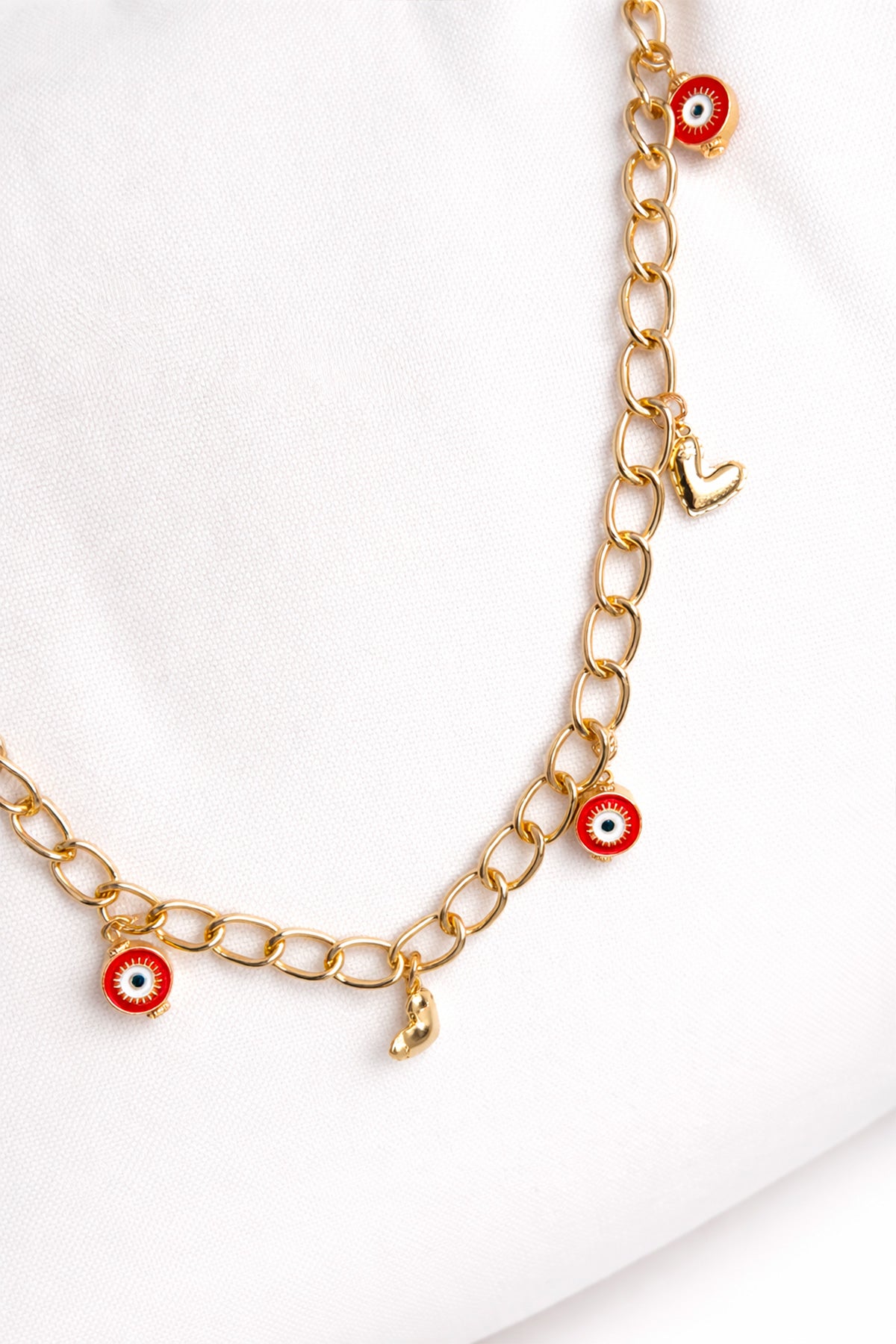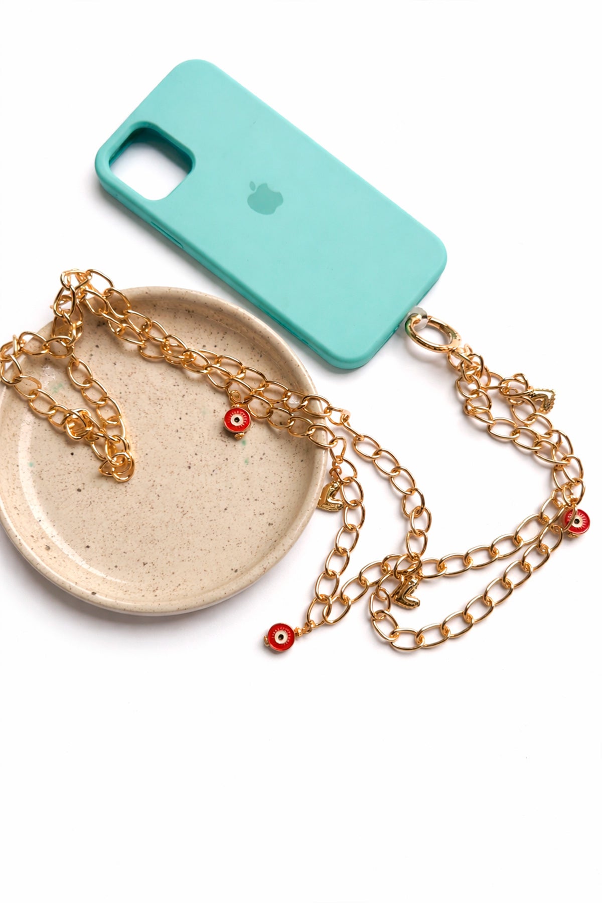 Strap en cadena y dijes rojos de ojo tuco