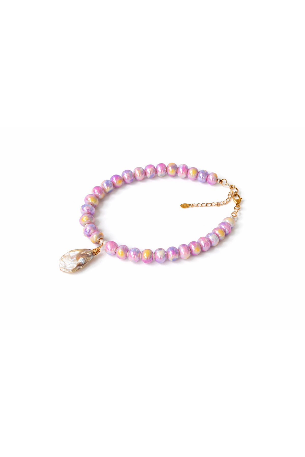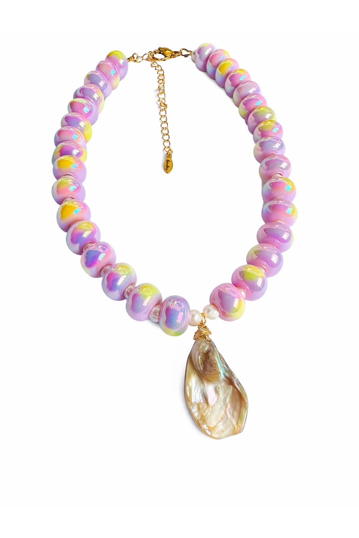 Collar con piedras lilas y dije de concha