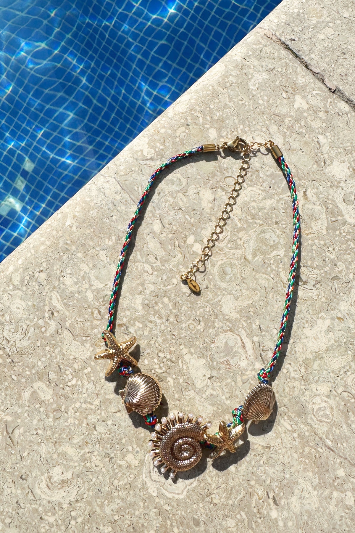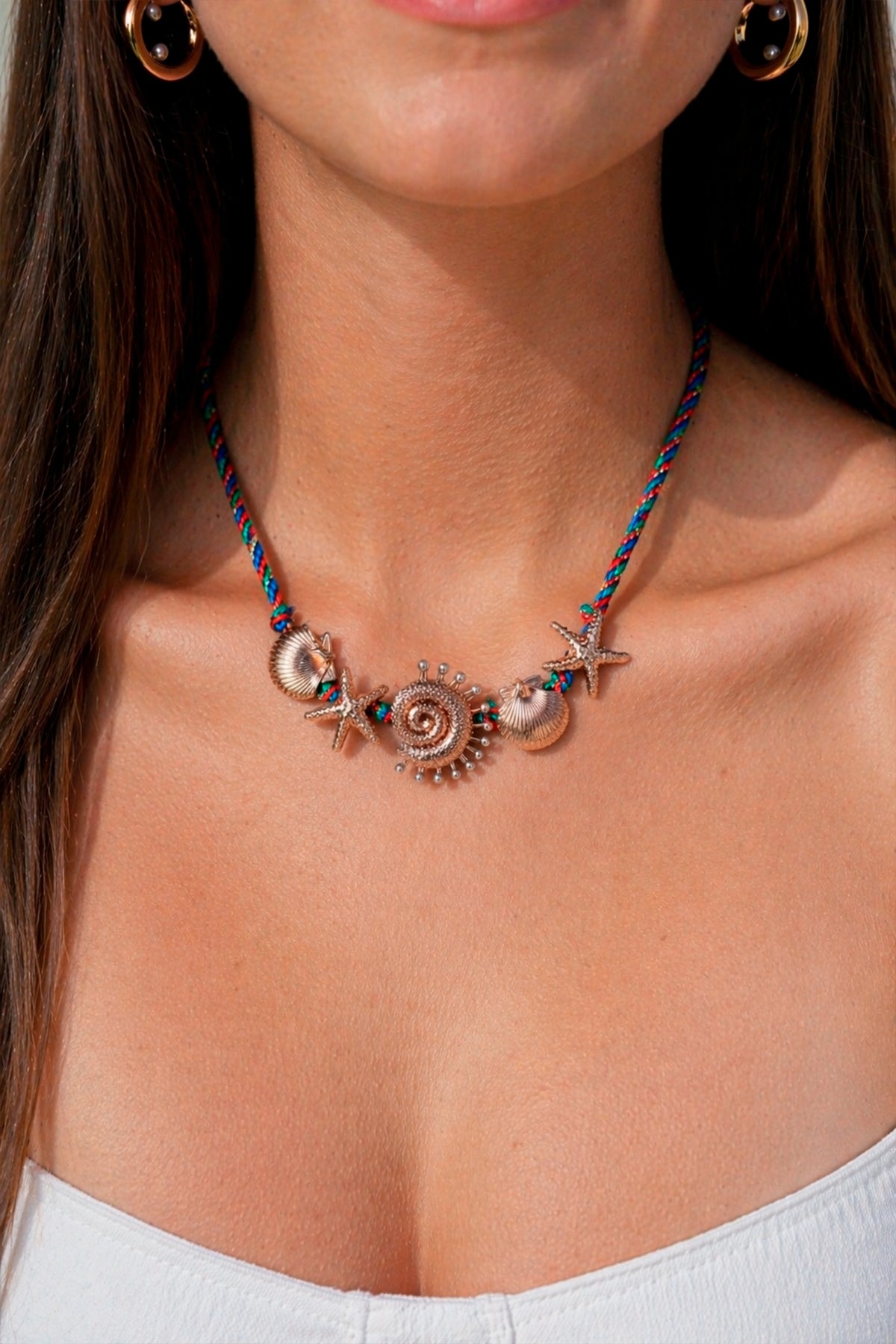 Collar en cordón con dijes Maxi de estrellas y conchas