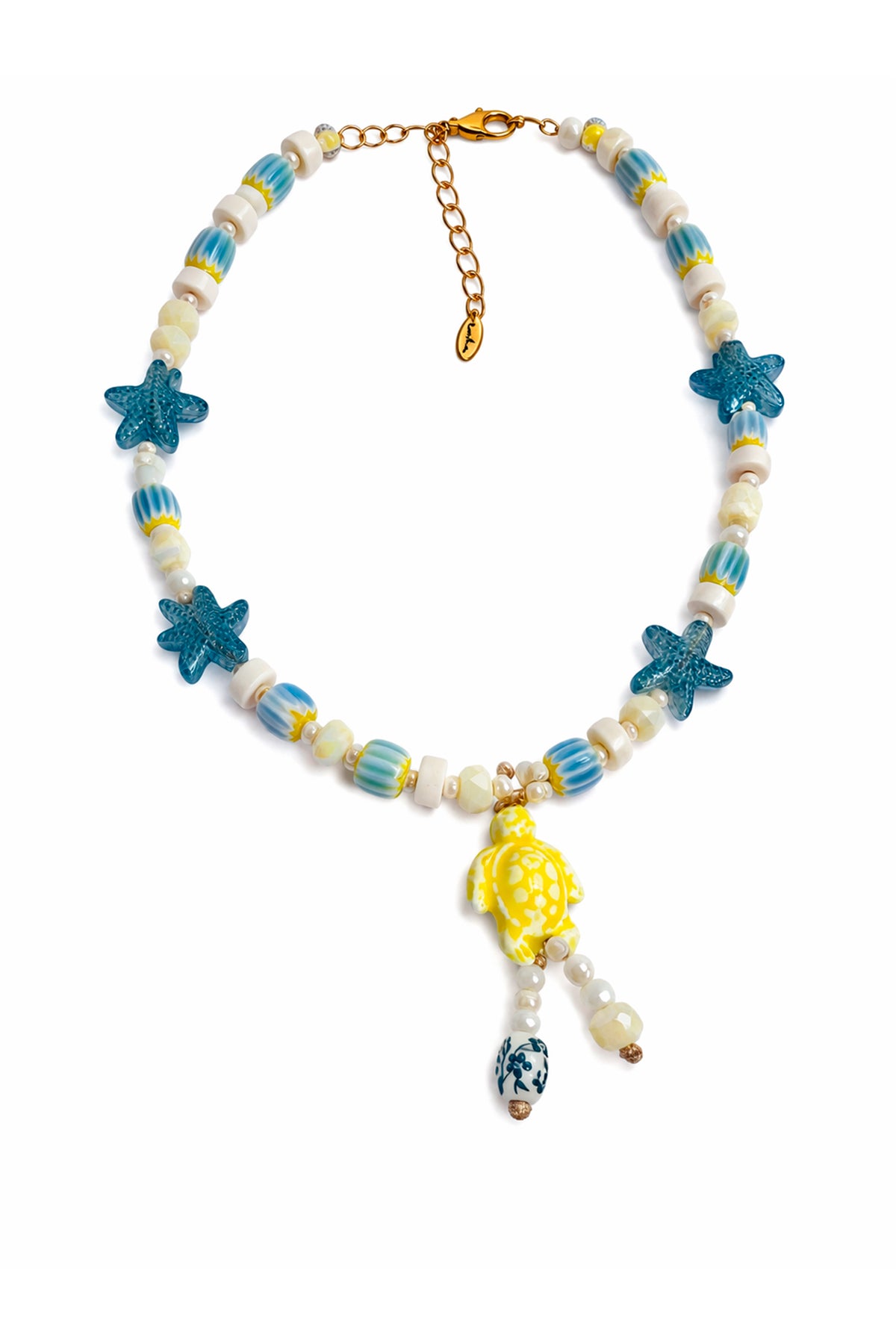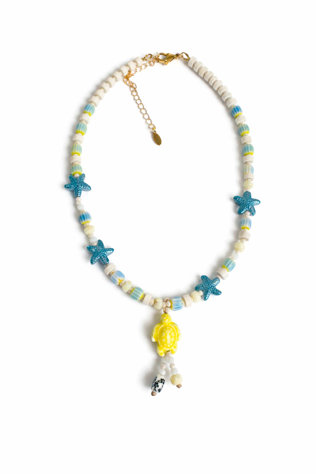 Collar con piedras azules y dije de Tortuga